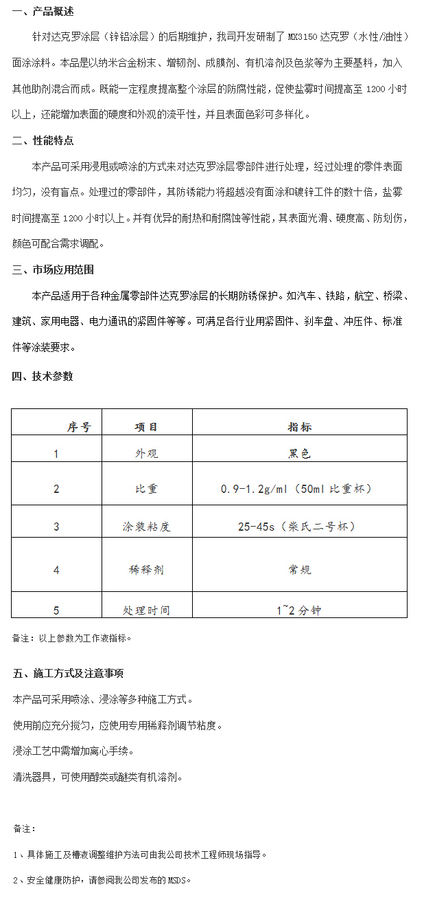 產品名稱:MX3150達克羅面涂涂料(黑色)