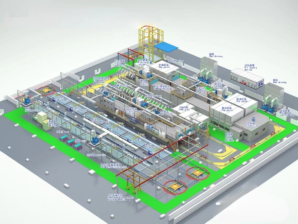 涂裝流水線的七大組成部分主要包括:前處理設備、噴粉(噴塑)系統、噴漆設備、烘爐、熱源系統、電控系統、懸掛輸送鏈等。
